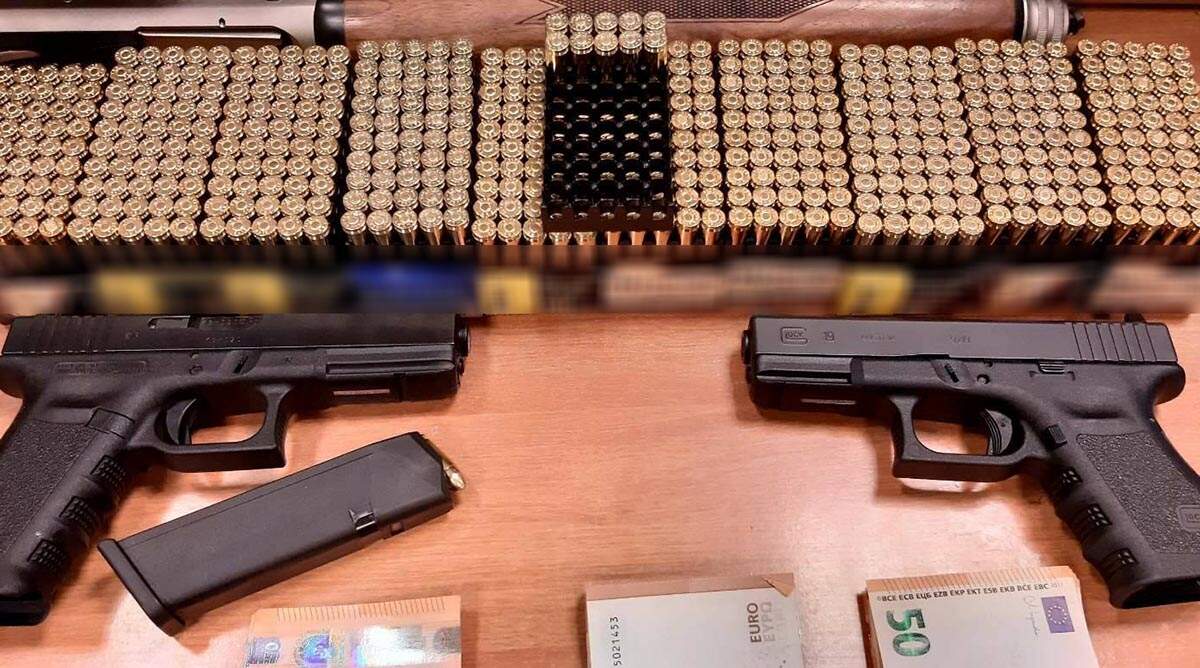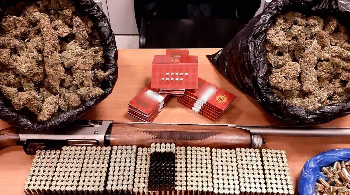 Βρέθηκαν και κατασχέθηκαν πάνω από 2,5 κιλά κάνναβης, 2 πιστόλια, γεμιστήρες, φυσίγγια και το χρηματικό ποσό των 9.670 ευρώ.