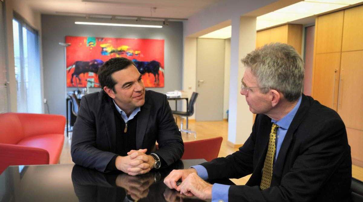 Στο επίκεντρο της συνάντησης του προέδρου του ΣΥΡΙΖΑ-ΠΣ με τον Αμερικανό πρέσβη βρέθηκαν οι διμερείς σχέσεις Ελλάδας-ΗΠΑ, οι εξελίξεις στην Ουκρανία και οι πρόσφατες προκλήσεις της Τουρκίας.