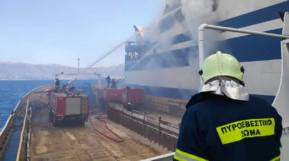 Στο νοσοκομείο της Κέρκυρας μεταφέρθηκαν δύο πυροσβέστες της ΕΜΑΚ που επιχείρησαν χθες στο φλεγόμενο πλοίο για τη διάσωση των δύο οδηγών που είχαν εγκλωβιστεί.