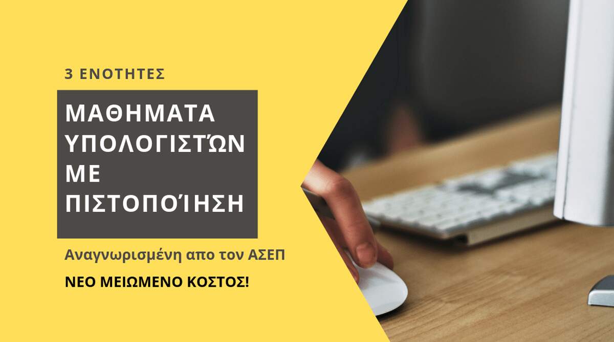 οκτήστε την πιστοποίηση που αναγνωρίζει ο ΑΣΕΠ και το Ελληνικό Δημόσιο στις 3 βασικές ενότητες (word-excel-internet).