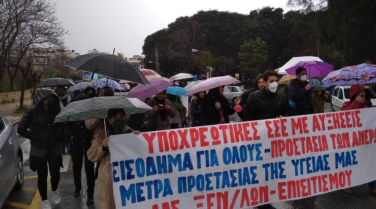 Μετά τη συγκέντρωση ακολούθησε πορεία στους κεντρικούς δρόμους της πόλης. Κατατέθηκε ψήφισμα με τα αιτήματα των σωματείων στην Περιφέρεια Κρήτης.
