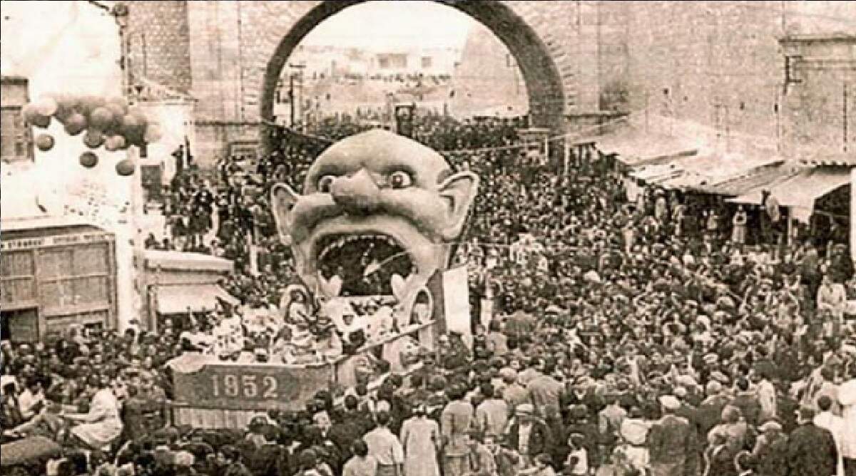 Η εικόνα είναι από το πρώτο μεταπολεμικό καρναβάλι που οργανώθηκε στο Ηράκλειο. Ήταν το 1952. Ο βασιλιάς Καρνάβαλος του Ηρακλείου έκανε δυο παρελάσεις, την Τσικνοπέμπτη και την τελευταία Κυριακή των Αποκρεών, όταν ο δήμος της πόλης έκανε την πρώτη απόπειρα μιας οργανωμένης καρναβαλικής παρέλασης. Με μεγάλη μάλιστα επιτυχία.