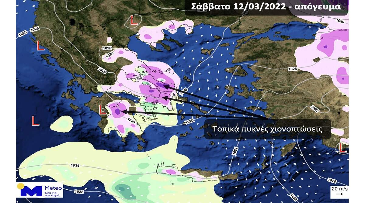Οι χιονοπτώσεις σταδιακά θα επεκταθούν νοτιότερα και βαθμιαία από το μεσημέρι θα επηρεάσουν την Ανατολική Θεσσαλία (Μαγνησία), την Ανατολική και Κεντρική Στερεά Ελλάδα, τα νησιά των Βορείων Κυκλάδων, τα ορεινά, ημιορεινά και βαθμιαία τα πεδινά της Κρήτης, ενώ θα συνεχιστούν στην Ανατολική Πελοπόννησο. Επιπρόσθετα θα επηρεαστούν, η Φθιώτιδα, η Βοιωτία, η Αττική και το μεγαλύτερο μέρος της Πελοποννήσου.