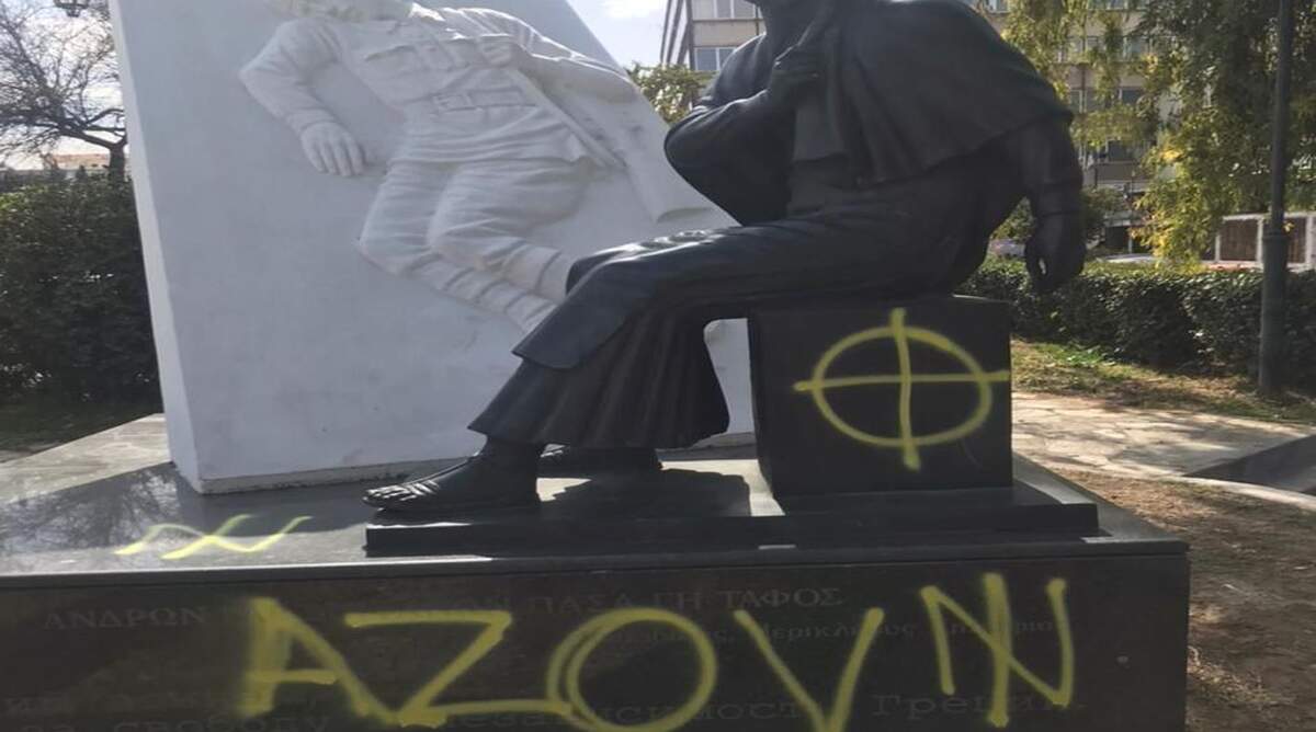«Οι υπέρμαχοι του ουκρανικού εθνικιστικού τάγματος Αζόφ, που τόσα χρόνια τρομοκρατούσε και δολοφονούσε εν ψυχρώ τους κατοίκους της ανατολικής Ουκρανίας, σήκωσαν το χέρι τους εναντίον της ιερής μνήμης στην Ελλάδα για τους Σοβιετικούς στρατιώτες – αυτούς οι οποίοι με τεράστιες θυσίες απελευθέρωσαν την σκλαβωμένη Ευρώπη από τον φασισμό στο Β’ Παγκόσμιο πόλεμο.
