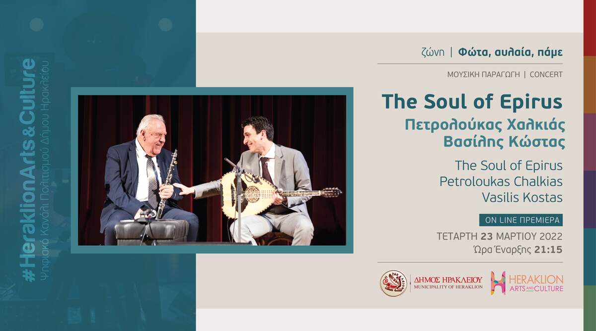 «The Soul of Epirus», η μουσική συνάντηση δυο κορυφαίων μουσικών της Ηπείρου, του Πετρολούκα Χαλκιά και του Βασίλη Κώστα,  ένας «διάλογος» ανάμεσα στο κλαρίνο και το λαούτο έρχεται στο διαδικτυακό κανάλι πολιτισμού του Δήμου Ηρακλείου – Heraklion Arts and Culture