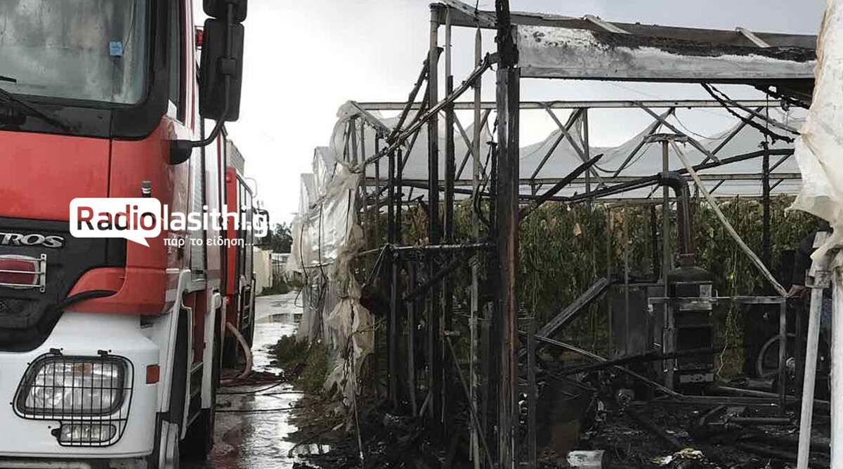 Η πυρκαγιά, σύμφωνα με το Ράδιο Λασίθι, πιθανότατα ξέσπασε από βραχυκύκλωμα στην αποθήκη του θερμοκηπίου η οποία όπως φαίνεται και στην φωτογραφία την κατέστρεψε ολοσχερώς μαζί με ένα σημαντικό τμήμα της θερμοκηπιακής εγκατάστασης.
