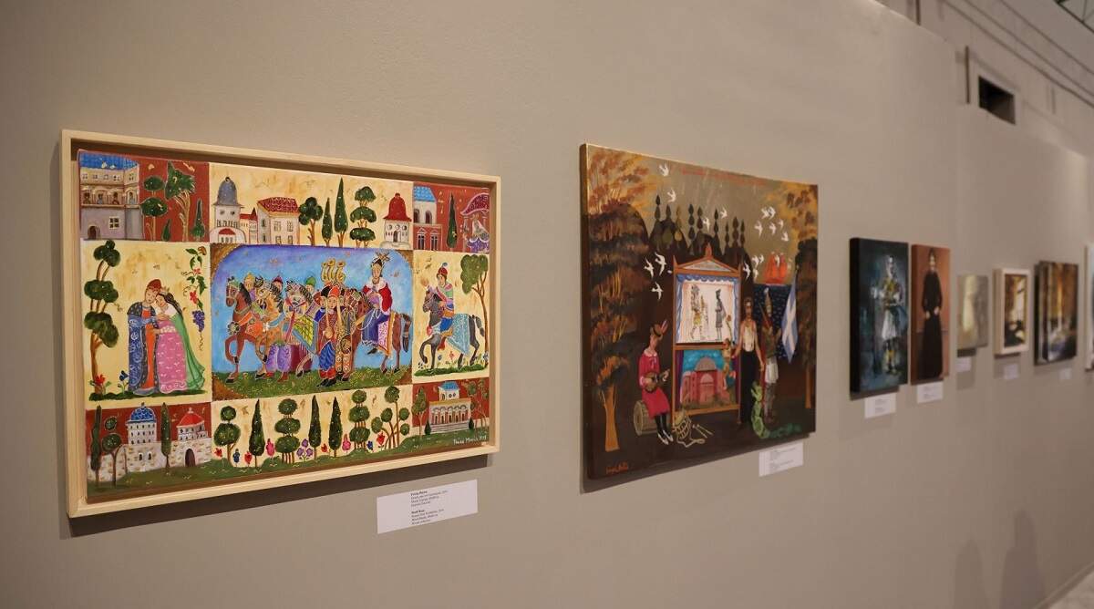 Στην έκθεση παρουσιάζονται τρία αυθεντικά έργα του Θεόφιλου, μαζί με ένα ακόμα που βρισκόταν στην κατοχή του και αποτέλεσε πηγή έμπνευσης για τον ζωγράφο, καθώς και δημιουργίες από 80 και πλέον διακεκριμένους Έλληνες εικαστικούς.