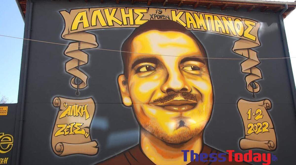 Σήμερα πήρε μορφή το τεράστιο γκράφιτι για τον αδικοχαμένο Άλκη. Στον τόπο του στυγερού εγκλήματος, δημιουργήθηκε ένα τεράστιο γκράφιτι στη μνήμη του, που απεικονίζει το χαμογελαστό πρόσωπό του, γράφοντας επάνω με μεγάλα γράμματα το ονοματεπώνυμό του.