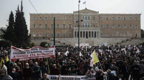 Μαζικότατες και με παλμό ήταν οι συγκεντρώσεις κατά της ακρίβειας στο κέντρο της Αθήνας, στο πλαίσιο της 24ωρης πανελλαδικής απεργίας που έχει κηρυχθεί για σήμερα. Ανοιχτοί πλέον οι γύρω δρόμοι. «Κάτω η χούντα του Μητσοτάκη» βροντοφώναξαν περισσότεροι από 10.000 διαδηλωτές, έξω από τη Βουλή, όπως μεταδίδει το efsyn.gr. «Δουλειές – αυξήσεις, όχι πόλεμο», «ακρίβεια φωτιά, οι συνταξιούχοι στην πυρά», «ενάντια…