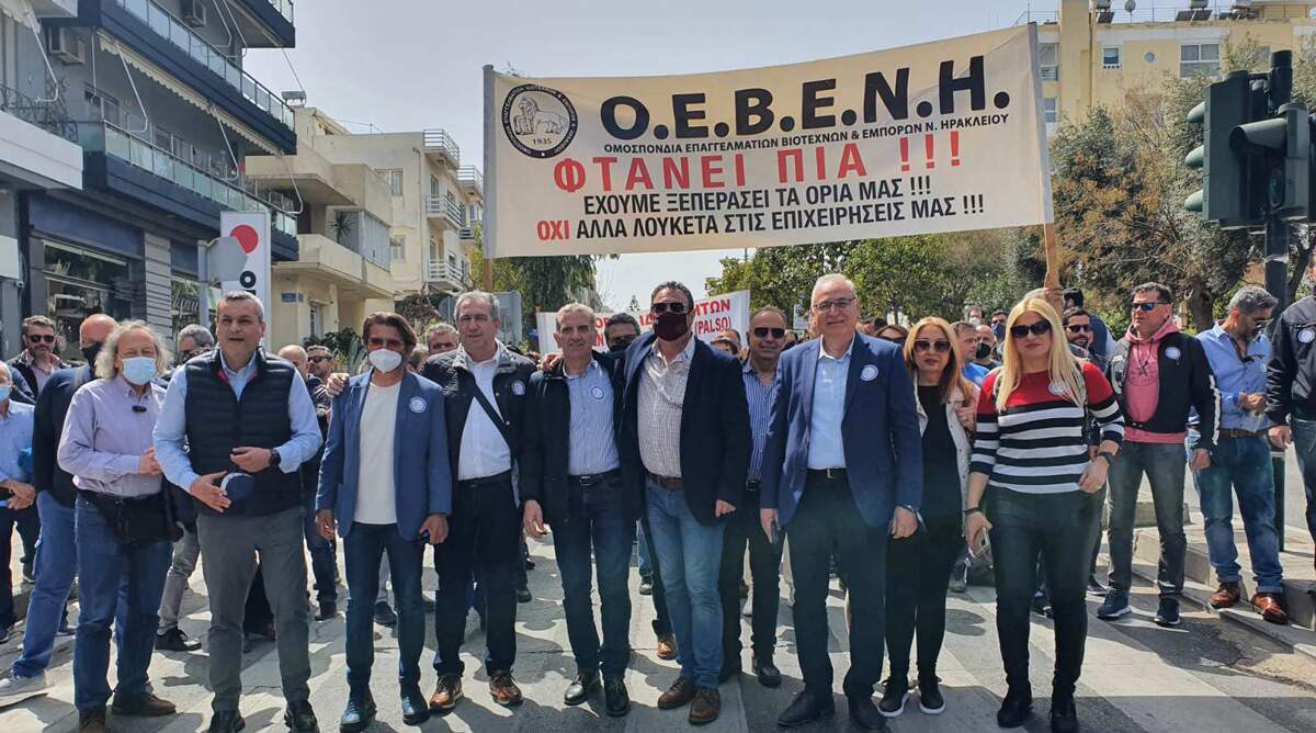Η ΟΕΒΕΝΗ ανταποκρινόμενη στο κάλεσμα της ΓΣΕΒΕΕ, πραγματοποίησε συγκέντρωση διαμαρτυρίας και πορεία προς την Περιφέρεια Κρήτης, σήμερα Τετάρτη 6 Απριλίου 2022.