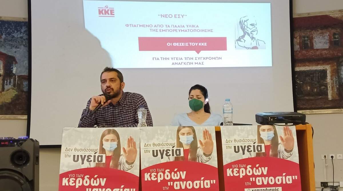 Πραγματοποιήθηκε η εκδήλωση της ΤΕ Ηρακλείου με θέμα: «‘‘Νέο’’ ΕΣΥ- φτιαγμένο από τα παλιά υλικά της εμπορευματοποίησης. Οι Θέσεις του ΚΚΕ για την υγεία των σύγχρονων αναγκών μας» το Σάββατο 16/4 με κεντρικό ομιλητή τον Γιώργο Σιδέρη, μέλος της Κεντρικής Επιτροπής του ΚΚΕ και υπεύθυνο του τμήματος Υγείας-Πρόνοιας της ΚΕ.
