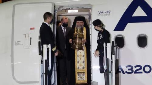 Λίγο μετά τις 20:30 του Μεγάλου Σαββάτου -με πολύ μεγάλη καθυστέρηση- έφτασε στο αεροδρόμιο «Ελευθέριος Βενιζέλος» η αποστολή, υπό τον υφυπουργό Εξωτερικών Ανδρέα Κατσανιώτη, ο οποίος νωρίτερα παρέλαβε το Άγιο Φως μετά την ολοκλήρωση της τελετής στον Ναό της Αναστάσεως στα Ιεροσόλυμα. Η άφιξη του Αγίου Φωτός στην Ελλάδα είχε προγραμματιστεί για τις 6:00 το απόγευμα, ωστόσο, υπήρξαν καθυστερήσεις στο αεροδρόμιο του Τελ Αβίβ…
