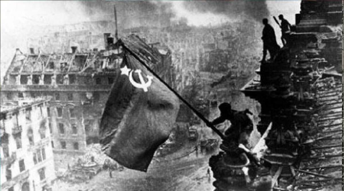 Ήταν 30 Απριλίου του 1945 και ώρα 21.50 όταν ο επιλοχίας Μ. Α. Φ. Γιεγκόροφ και ο λοχίας Μ. Β. Καντάρια του σοβιετικού στρατού έστησαν την κόκκινη σημαία με το σφυροδρέπανο, τη Σημαία της Νίκης, πάνω από τον κεντρικό Τρούλο του Ράιχσταγκ. Αμέσως μετά, ο διοικητής της 3ης στρατιάς κρούσης στρατηγός Β. Ι. Κουζνετσόφ, που παρακολουθούσε προσωπικά την ιστορική μάχη κατάληψης του Ράιχσταγκ, πήρε στο τηλέφωνο το κέντρο διοίκησης και ανακοίνωσε στο στρατάρχη Ζούκοφ: «Στο Ράιχσταγκ κυματίζει η κόκκινη σημαία! Ζήτω, σύντροφε στρατάρχη!»