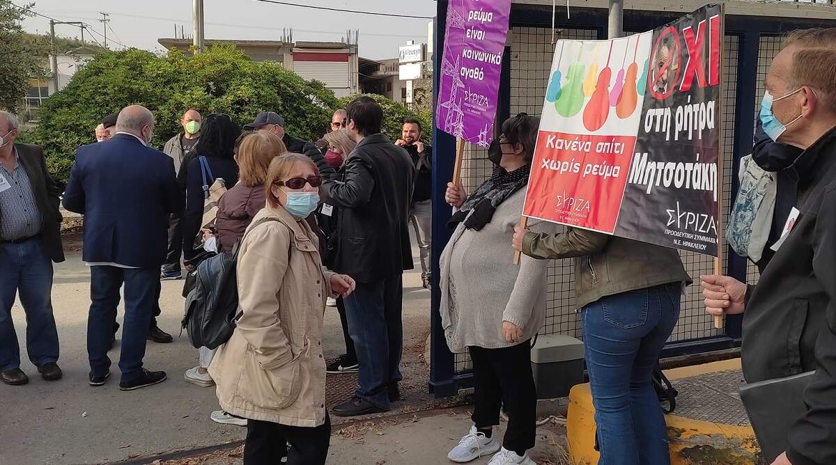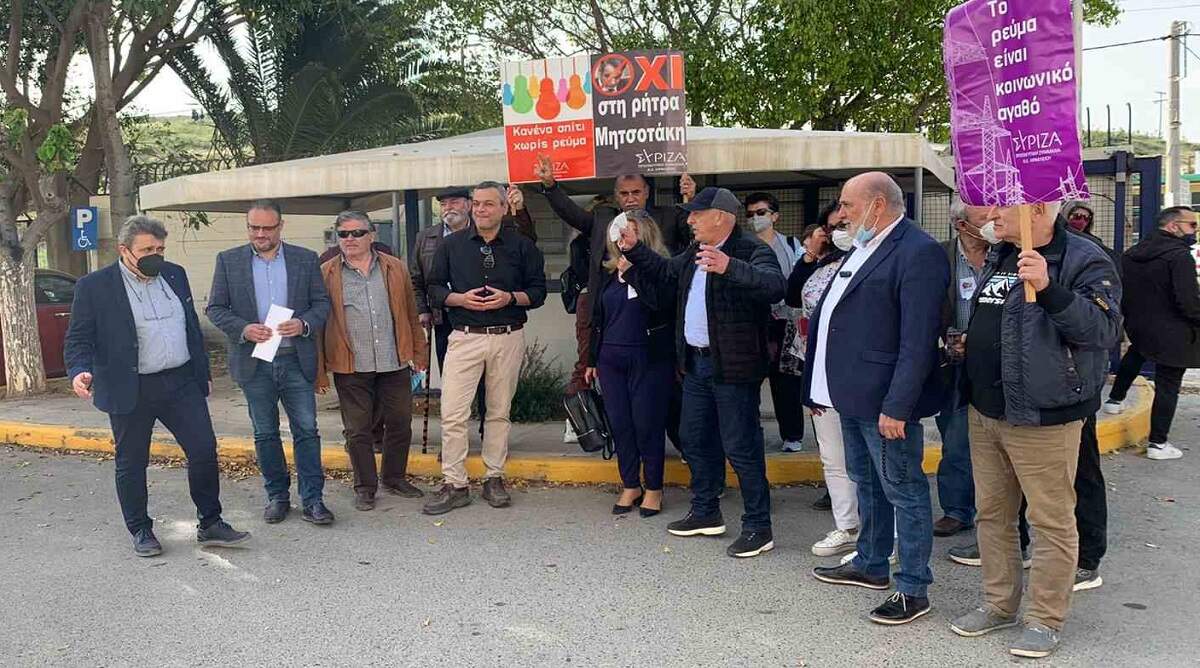Παράσταση διαμαρτυρίας με κεντρικό σύνθημα «κανένα σπίτι χωρίς ρεύμα» και αιτήματα το άμεσο «πάγωμα» των διαταγών διακοπής ηλεκτρικής ενέργειας, αλλά και την επανασύνδεση της παροχής σε όσα νοικοκυριά έχει ήδη διακοπεί, πραγματοποίησαν σήμερα το πρωί βουλευτές και στελέχη του ΣΥΡΙΖΑ-ΠΣ, στα κεντρικά γραφεία του ΔΕΔΔΗΕ Ηρακλείου, στο Τσαλικάκι Γαζίου.