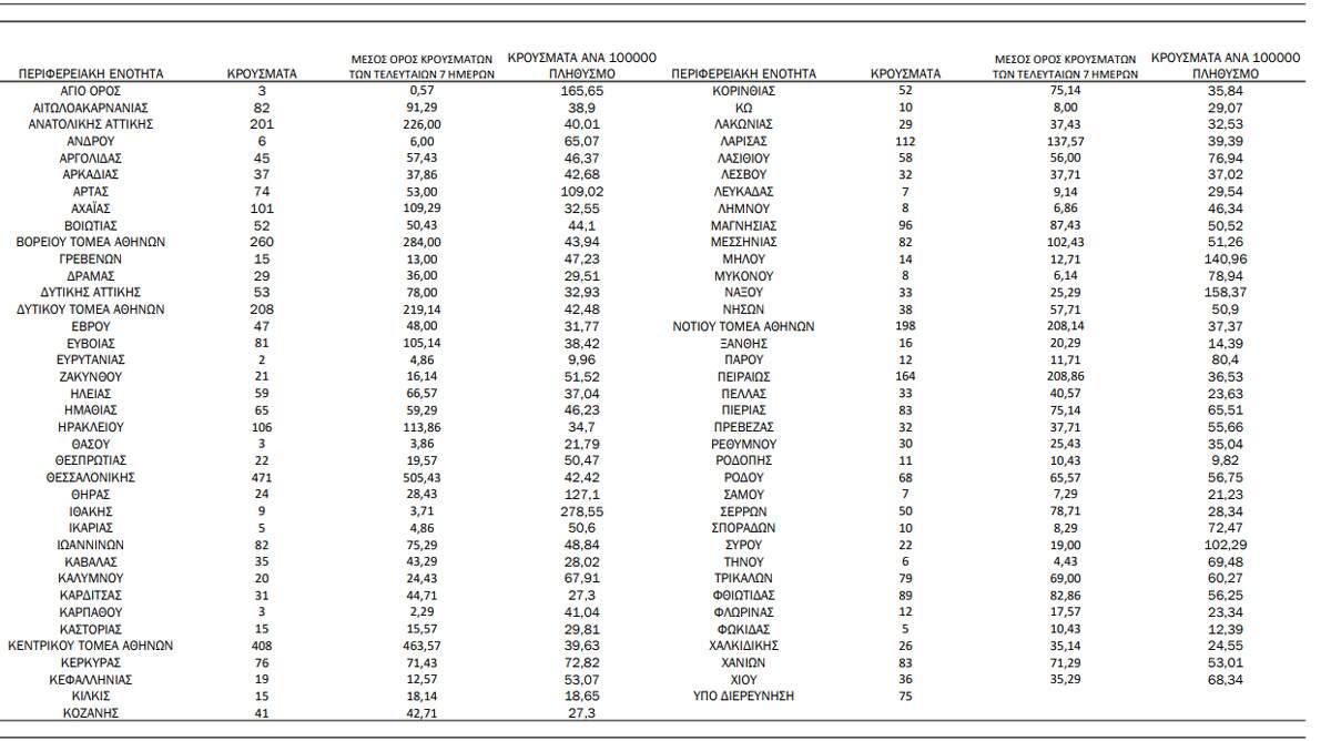 Τα νέα εργαστηριακά επιβεβαιωμένα κρούσματα της νόσου(άτομα) που καταγράφηκαν τις τελευταίες 24 ώρες ήταν 4.176. Ο συνολικός αριθμός των ατόμων που νόσησαν ανέρχεται σε 3.335.550 (ημερήσια μεταβολή +0.1%), εκ των οποίων 48.9% άνδρες.