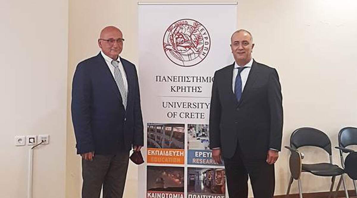 Τον Πρύτανη του Πανεπιστημίου Κρήτης, Καθηγητή Γεώργιο Μ. Κοντάκη επισκέφτηκε σήμερα, Δευτέρα 9 Μαΐου 2022, ο Πρέσβης του Βασιλείου του Μαρόκο στην Ελλάδα, κ. Mohammed Sbihi συνοδευόμενος από την Γραμματέα Πρεσβείας Α’, κα Dalal Ziadi και τον Επίτιμο Πρόξενο του Βασιλείου του Μαρόκου στην Περιφέρεια Κρήτης, κ. Εμμανουήλ Γαλανάκη. Στη συνάντηση συμμετείχε επίσης, ο Κοσμήτορας της Σχολής Θετικών & Τεχνολογικών Επιστημών του Πανεπιστημίου Κρήτης, Καθηγητής Εμμανουήλ Στρατάκης.