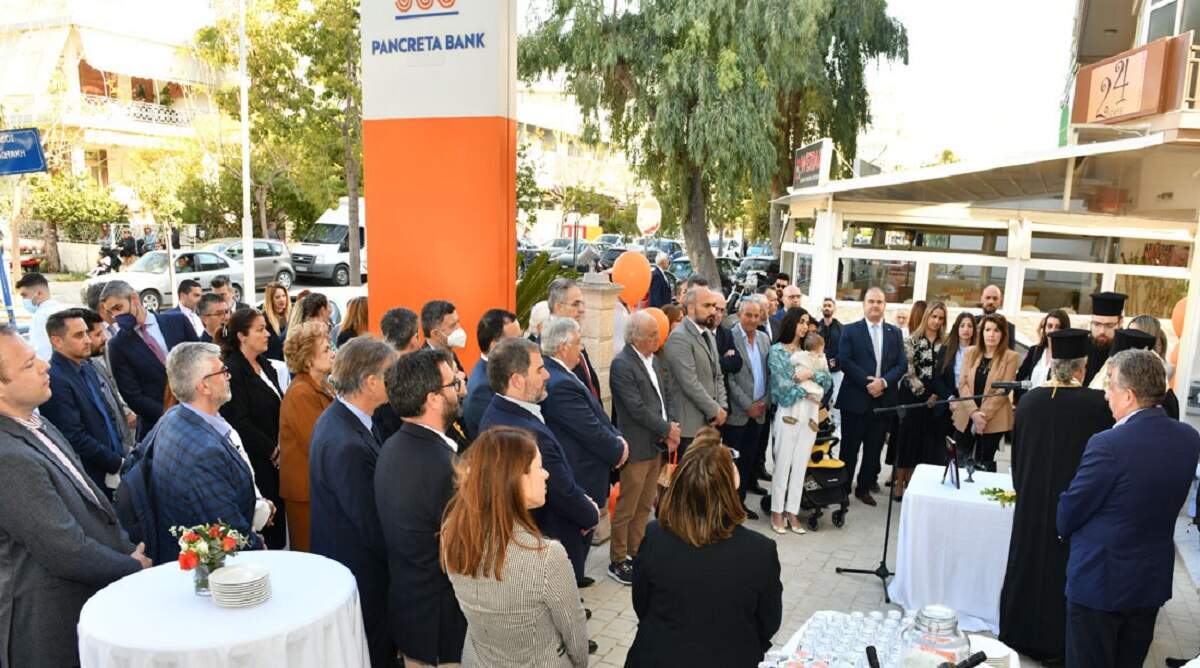 Πραγματοποιήθηκαν τα επίσημα εγκαίνια του πρότυπου Καταστήματος της Παγκρήτιας Τράπεζας στη Λ. Δημοκρατίας 22 στο Ηράκλειο.