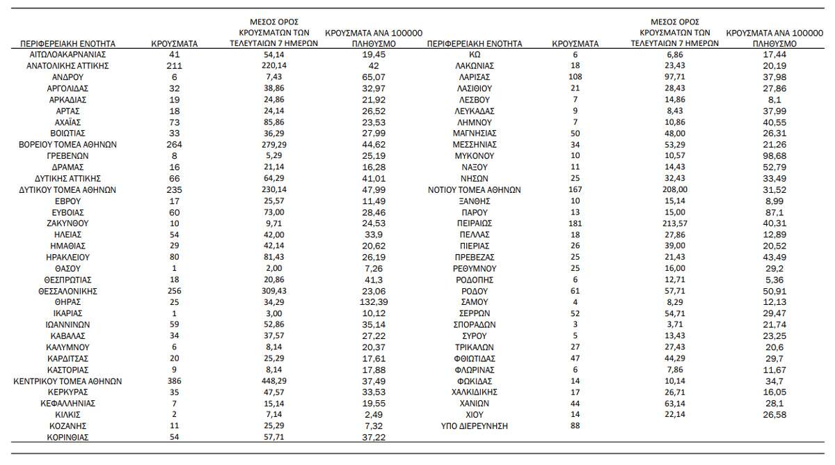 Τα νέα εργαστηριακά επιβεβαιωμένα κρούσματα της νόσου(άτομα) που καταγράφηκαν τις τελευταίες 24 ώρες ήταν 3.066. Ο συνολικός αριθμός των ατόμων που νόσησαν ανέρχεται σε 3.395.641 (ημερήσια μεταβολή +0.1%), εκ των οποίων 48.8% άνδρες. Ο αριθμός πιθανών νέων επαναλοιμώξεων που καταγράφηκαν τις τελευταίες 24 ώρες ήταν 291 ενώ από την αρχή της πανδημίας SARS-CoV-2 ο συνολικός αριθμός εκτιμάται σε 129.311(3.7% του συνολικού αριθμού των θετικών αποτελεσμάτων)