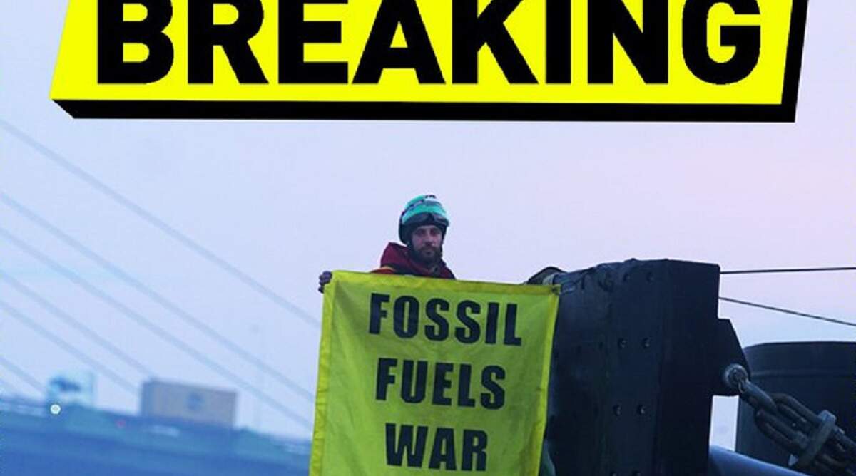 Η Greenpeace είπε ότι 12 ακτιβιστές κατέλαβαν μια προβλήτα το απόγευμα της Κυριακής στην τοποθεσία Navigator Terminals του Τάμεση στο Έσσεξ, όπου το υπό ελληνική σημαία δεξαμενόπλοιο προϊόντων πετρελαίου Ανδρομέδα αναμενόταν να εκφορτίσει το φορτίο του.