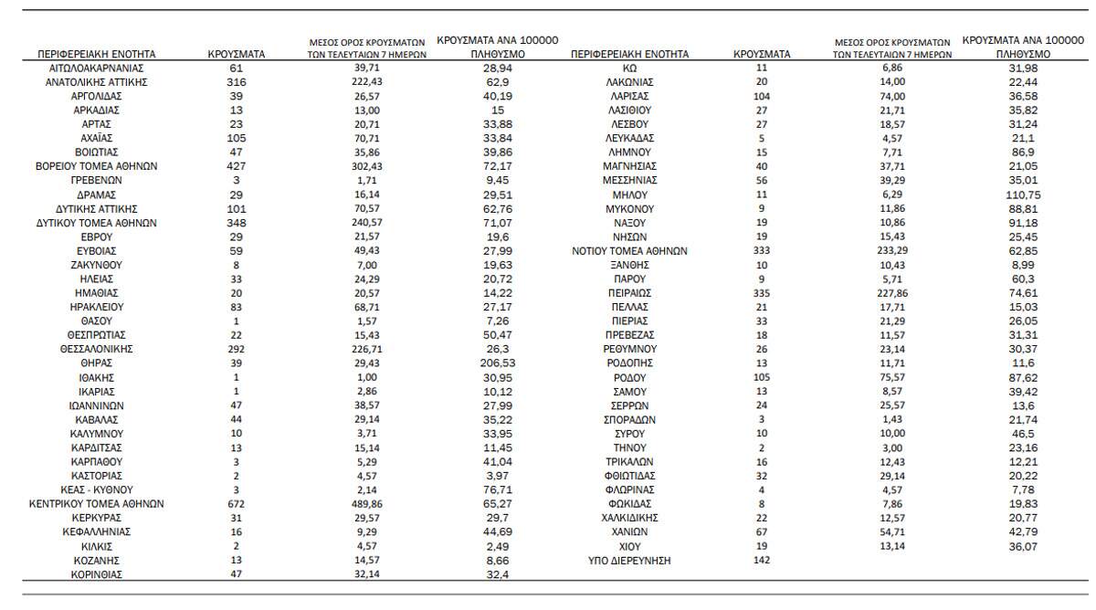Τα νέα εργαστηριακά επιβεβαιωμένα κρούσματα της νόσου (άτομα) που καταγράφηκαν τις τελευταίες 24 ώρες ήταν 4.141. Ο συνολικός αριθμός των ατόμων που νόσησαν ανέρχεται σε 3.431.998 (ημερήσια μεταβολή +0.1%), εκ των οποίων 48.8% άνδρες. Ο αριθμός πιθανών νέων επαναλοιμώξεων που καταγράφηκαν τις τελευταίες 24 ώρες ήταν 493 ενώ από την αρχή της πανδημίας SARS-CoV-2 ο συνολικός αριθμός εκτιμάται σε 133.347(3.7% του συνολικού αριθμού των θετικών αποτελεσμάτων).