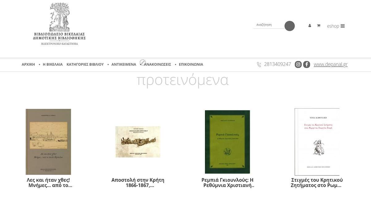 Σε δήλωση της η Πρόεδρος της ΔΕΠΑΝΑΛ Α.Ε. Στέλλα Αρχοντάκη – Καλογεράκη ανέφερε: «Η ΔΕΠΑΝΑΛ, η οποία όπως είναι γνωστό διαχειρίζεται το Βιβλιοπωλείο της Βικελαίας Δημοτικής Βιβλιοθήκης, υλοποιώντας τον σχεδιασμό της προχώρησε και στην δημιουργία του ηλεκτρονικού του καταστήματος. Διαδικτυακά, από την άνεση του υπολογιστή ή του κινητού τηλεφώνου, οι χρήστες απ’ όλο τον κόσμο θα μπορούν να περιηγηθούν, να δουν το σύνολο και τα χαρακτηριστικά των προς πώληση βιβλίων και αντικειμένων, να τα αγοράσουν και να τα παραλάβουν στην πόρτα τους.
