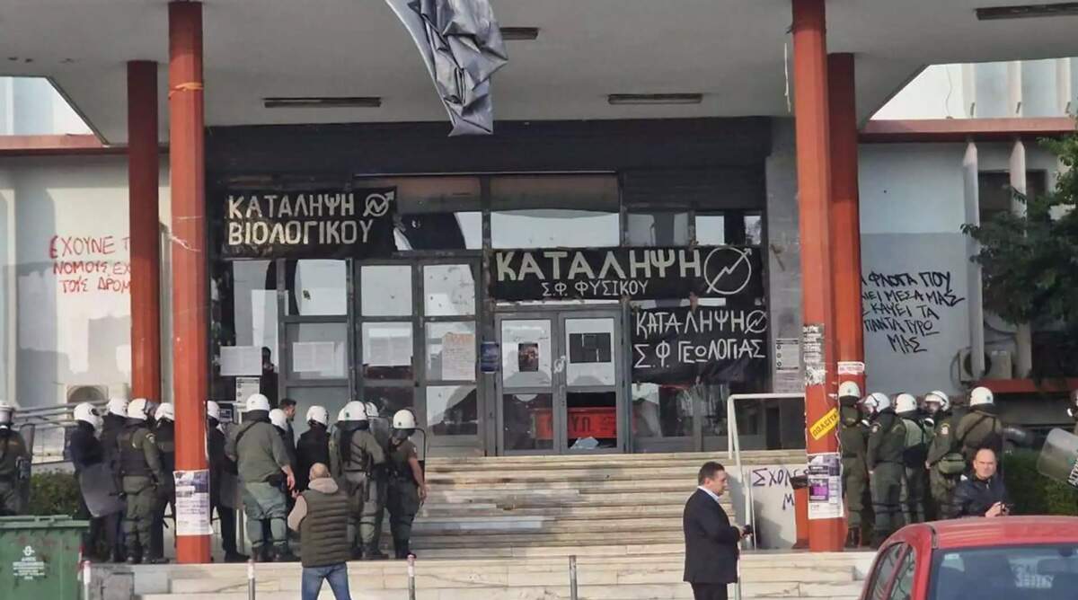 Σε μία ημέρα που σημαδεύτηκε από επεισόδια και τον σοβαρό τραυματισμό φοιτητή από την αστυνομική βία, βίντεο που έχουν αναρτηθεί στα social media καταγράφουν ούτε έναν, ούτε δύο, αλλά δεκάδες μασκοφόρους με σακίδια, ηλικίας που θα έφτανε για 2-3 πτυχία, να κινούνται μαζί με τις δυνάμεις των ΜΑΤ, στους χώρους του πανεπιστημίου.