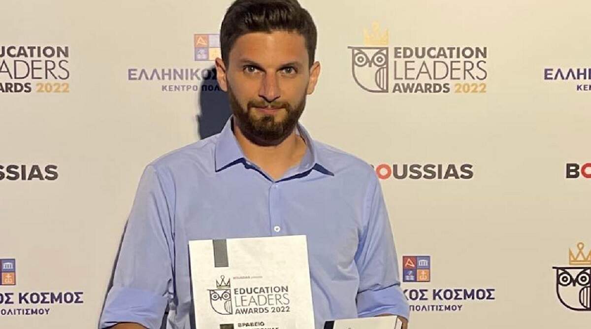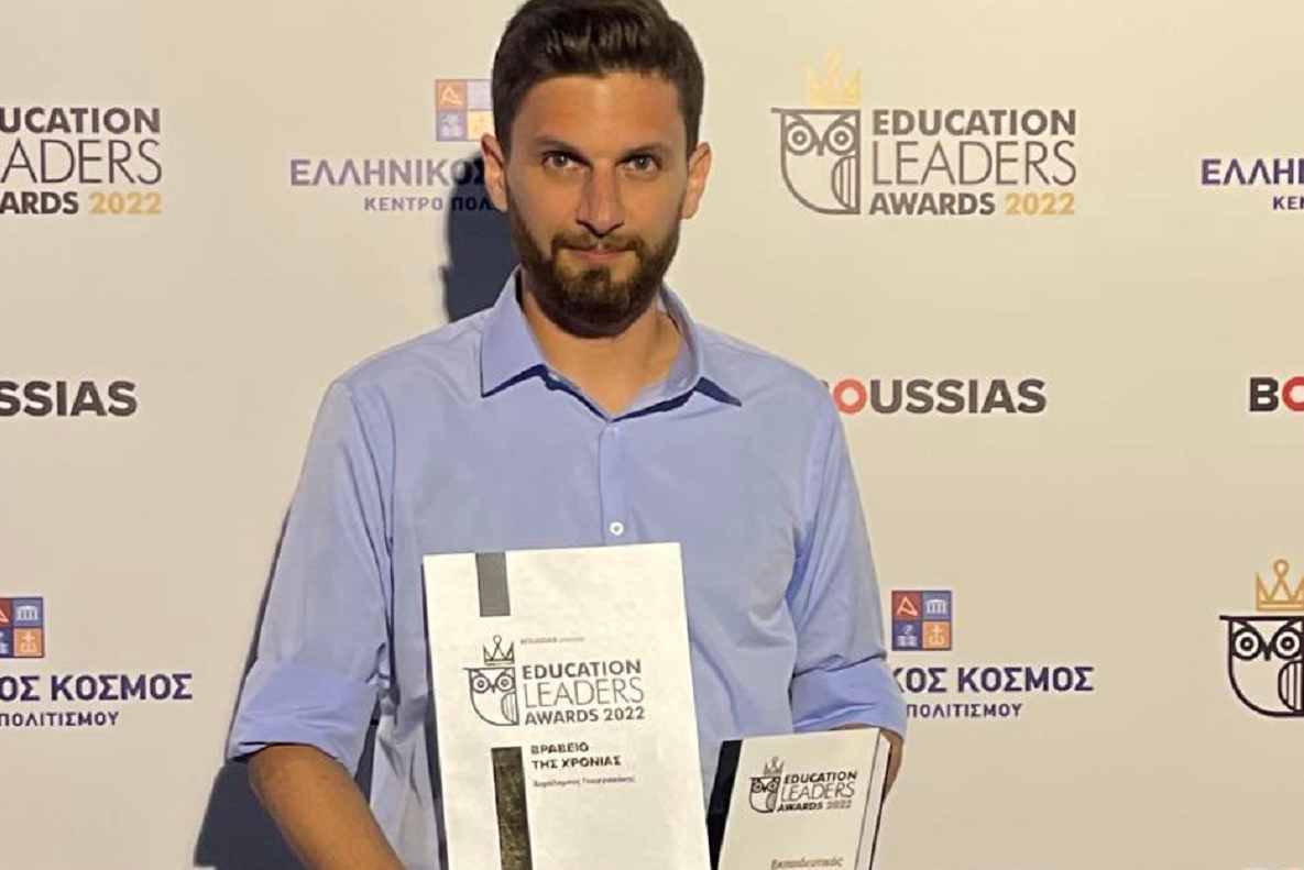 Ο νεοδιόριστος εκπαιδευτικός παρέλαβε το βραβείο του από τα χέρια της πρώην Υπουργού Παιδείας, της Άννας Διαμαντοπούλου, που ήταν και η πρόεδρος της επιτροπής αξιολόγησης που τον επέλεξε.