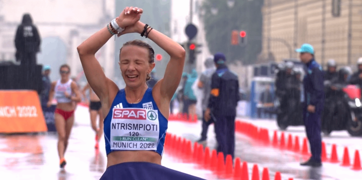 Δεύτερο χρυσό για την 38χρονη Αντιγόνη Ντρισμπιώτη, που μέσα σε 3 μέρες κέρδισε στο Ευρωπαϊκό του Μονάχου δυο χρυσά μετάλλια! Την Τρίτη στα 35 χιλιόμετρα και μόλις πριν λίγο στα 20 χιλιόμετρα!