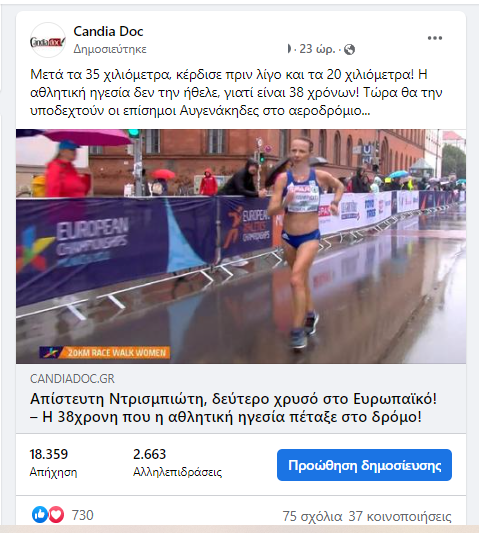 Γράφαμε χθες για την περίπτωση της Αντιγόνης Ντρισμπιώτη, της 38χρονης που κέρδισε τα δυο χρυσά μετάλλια στο βάδην των Ευρωπαϊκών του Μόναχο, μάλιστα μέσα σε λίγες, εκθέτοντας την ελληνική αθλητική ηγεσία που την είχε αποκλείσει από τον υψηλό σχεδιασμό, τα προνόμια και τις χορηγίες επειδή την έκρινε… μεγάλη!