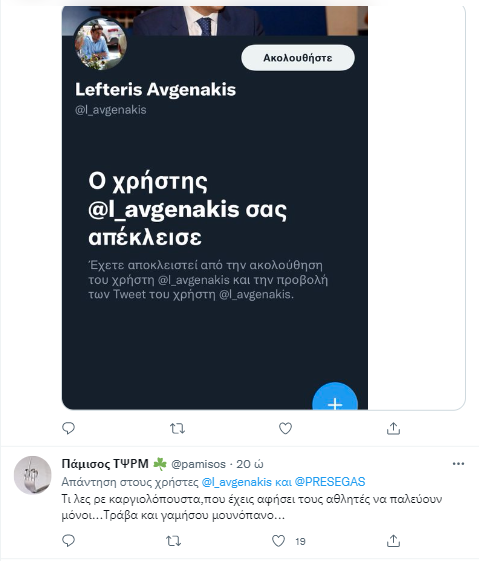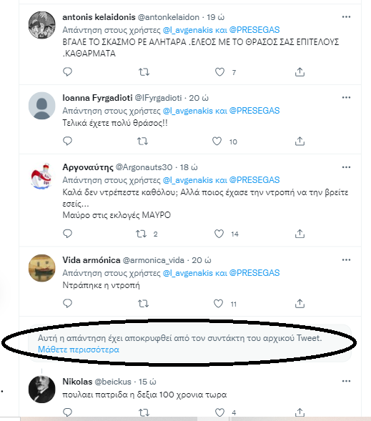 Διαβάστε το tweet του αλλά και τις απαντήσεις των χρηστών, που κυριολεκτικά τον αποδοκιμάζουν. ΚΙ εκείνος “απαντά” αποκλείοντας απαντήσεις και χρήστες!