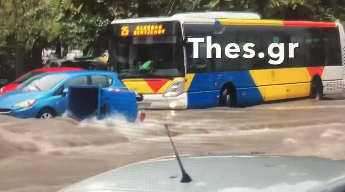 Μια από τις κεντρικότερες οδούς, η 26ης Οκτωβρίου που περνά μπροστά από το Δικαστικό Μέγαρο Θεσσαλονίκης, έχει μετατραπεί σε ποτάμι όπως μεταδίδουν τα τοπικά ειδησεογραφικά μέσα.