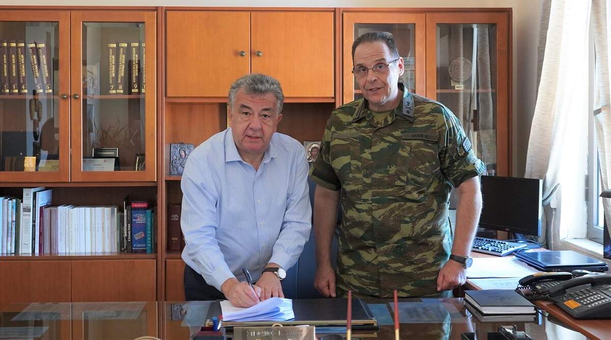 Την προγραμματική σύμβαση προϋπολογισμού 100.000 ευρώ για την υλοποίηση του έργου «Διαμόρφωση υφιστάμενου κτηρίου ΣΕΑΠ σε δομή φιλοξενίας στρατιωτικού προσωπικού» συνυπέγραψαν σήμερα ο Περιφερειάρχης Κρήτης Σταύρος Αρναουτάκης και ο Ανώτερος Διοικητής Φρουράς Ηρακλείου-Διοικητής Σχολής Εφέδρων Αξιωματικών Πεζικού (ΣΕΑΠ) Στέφανος Σίμος.