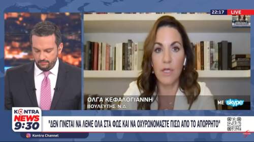 Το σκάνδαλο των υποκλοπών και η επιμονή της κυβέρνησης στην επίκληση του «απορρήτου» δεν υιοθετείται από όλα τα στελέχη του κόμματος της Πειραιώς με την Όλγα Κεφαλογιάννη να διαφοροποιείται ανοικτά και μεγαλοφώνως από την κυβερνητική γραμμή. Η βουλευτής και πρώην υπουργός της Ν.Δ., μιλώντας στο Kontra, ήταν ξεκάθαρη. «Το απόρρητο, με πολύ συγκεκριμένες δικλίδες ασφαλείας, θα πρέπει να μπαίνει, αν θέλετε,…