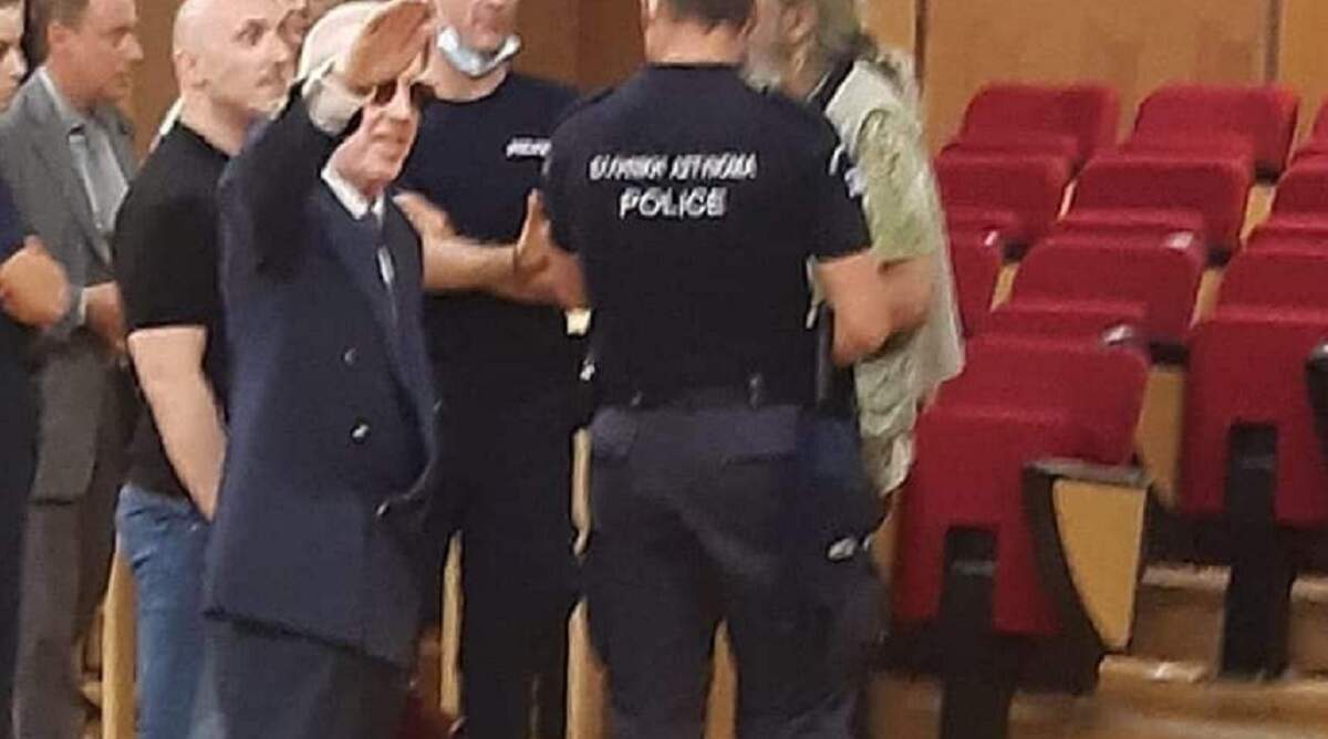 Ο γνωστός για τις πεποιθήσεις του δικηγόρος, που στην υπόθεση της Χρυσής Αυγής υπερασπίζεται τον Γιάννη Λαγό, φανερά χαρούμενος ανάμεσα σε ομοϊδεάτες του καταγράφηκε από φωτογραφικό φακό να χαιρετά ναζιστικά.