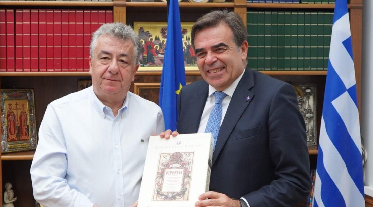Με τον Περιφερειάρχη Κρήτης Σταύρο Αρναουτάκη συναντήθηκε στην Περιφέρεια Κρήτης ο Αντιπρόεδρος της Ευρωπαϊκής Επιτροπής Μαργαρίτης Σχοινάς
