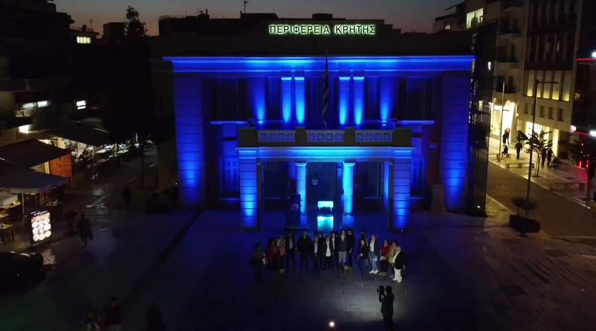 Στα μπλε φωταγωγήθηκε η Περιφέρεια Κρήτης, στέλνοντας μήνυμα σε όλους για την αναγκαιότητα της έγκυρης και έγκαιρης διάγνωσης και θεραπείας των ρευματικών-μυοσκελετικών νοσημάτων. Η φωταγώγηση έγινε στο πλαίσιο των εκδηλώσεων της Πανελλήνιας Ομοσπονδίας Συλλόγων Ασθενών, Γονέων, Κηδεμόνων και Φίλων Παιδιών με Ρευματικά Νοσήματα «ΡευΜΑζήν»,με αφορμή την Παγκόσμια Ημέρα Αρθρίτιδας.