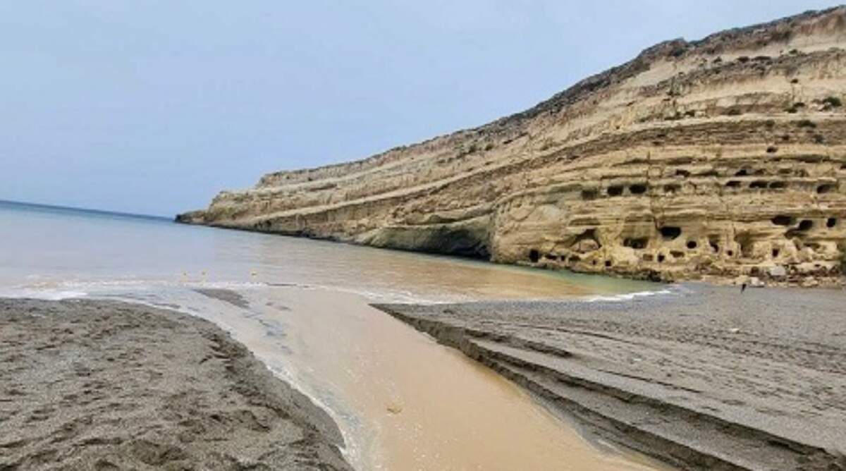 Ποτάμι δημιουργήθηκε στην παραλία των Ματάλων εξαιτίας των έντονων φαινομένων που προκλήθηκαν από την πρόσφατη κακοκαιρία.