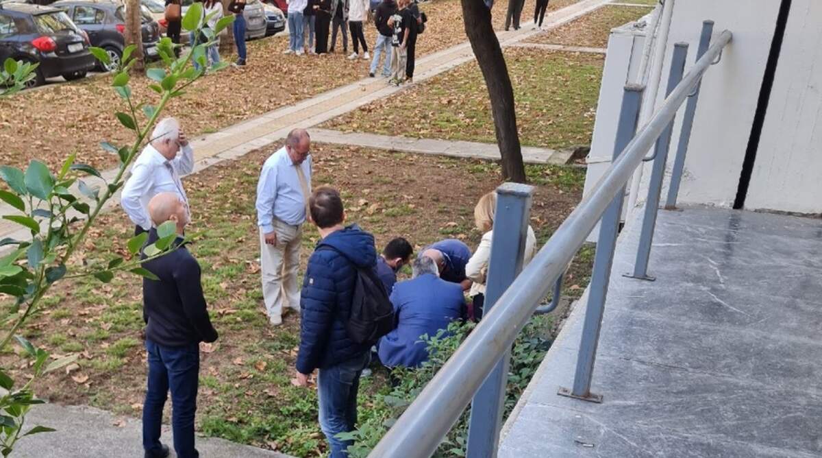 Ο φοιτητής του ΑΠΘ που έπεσε από τον 3ο όροφο στο έδαφος, δέχεται τις πρώτες βοήθειας -Φωτογραφία: foititikanea.gr