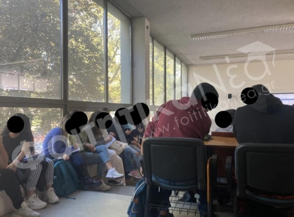 Φοιτητές στο ΑΠΘ κάθονται εκτός θρανίων καθώς δεν υπάρχουν διαθέσιμες θέσεις -Φωτογραφία: foititikanea.gr