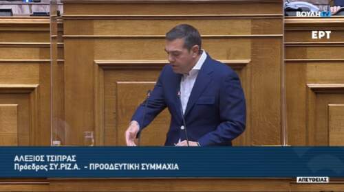 Ο πρωθυπουργός κρύβεται πίσω από το όνειδος του απόρρητου, επεσήμανε ο πρόεδρος του ΣΥΡΙΖΑ-ΠΣ Από το βήμα της Βουλής μίλησε πριν λίγο ο πρόεδρος του ΣΥΡΙΖΑ-ΠΣ Αλέξης Τσίπρας. Στο πλαίσιο της συζήτησης στη Ολομέλεια για το «γαλάζιο» απόρρητο πόρισμα της Εξεταστικής Επιτροπής, ο αρχηγός της αξιωματικής αντιπολίτευσης εξαπολύει ολομέτωπη επίθεση στην κυβέρνηση της ΝΔ και προσωπικά στον Κυριάκο Μητσοτάκη. «Δε θα χαριστούμε…