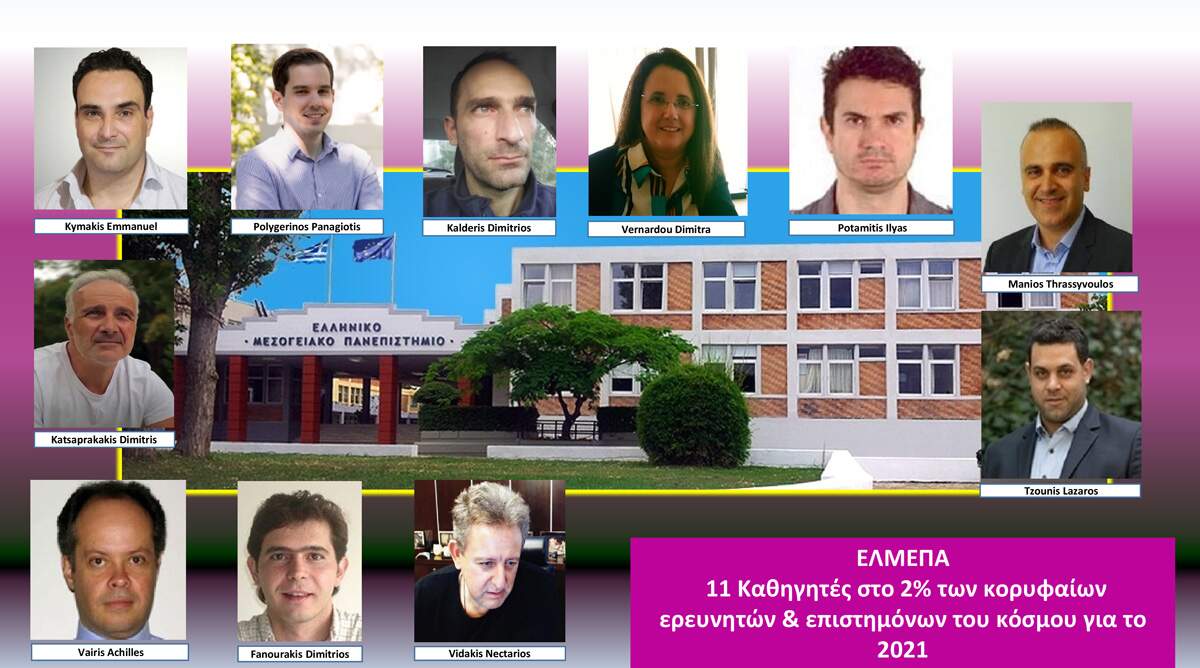 Δέκα (10) Καθηγητές του Ελληνικού Μεσογειακού Πανεπιστημίου εμφανίζονται στη λίστα με τους κορυφαίους 200.409 επιστήμονες παγκοσμίως για το 2021, οι οποίοι είτε είναι στις πρώτες 100.000 θέσεις της κατάταξης, είτε ανήκουν στο κορυφαίο 2% παγκοσμίως στην επιστημονική τους περιοχή. Κατά σειρά κατάταξης, πρόκειται για τους Καθηγητές: