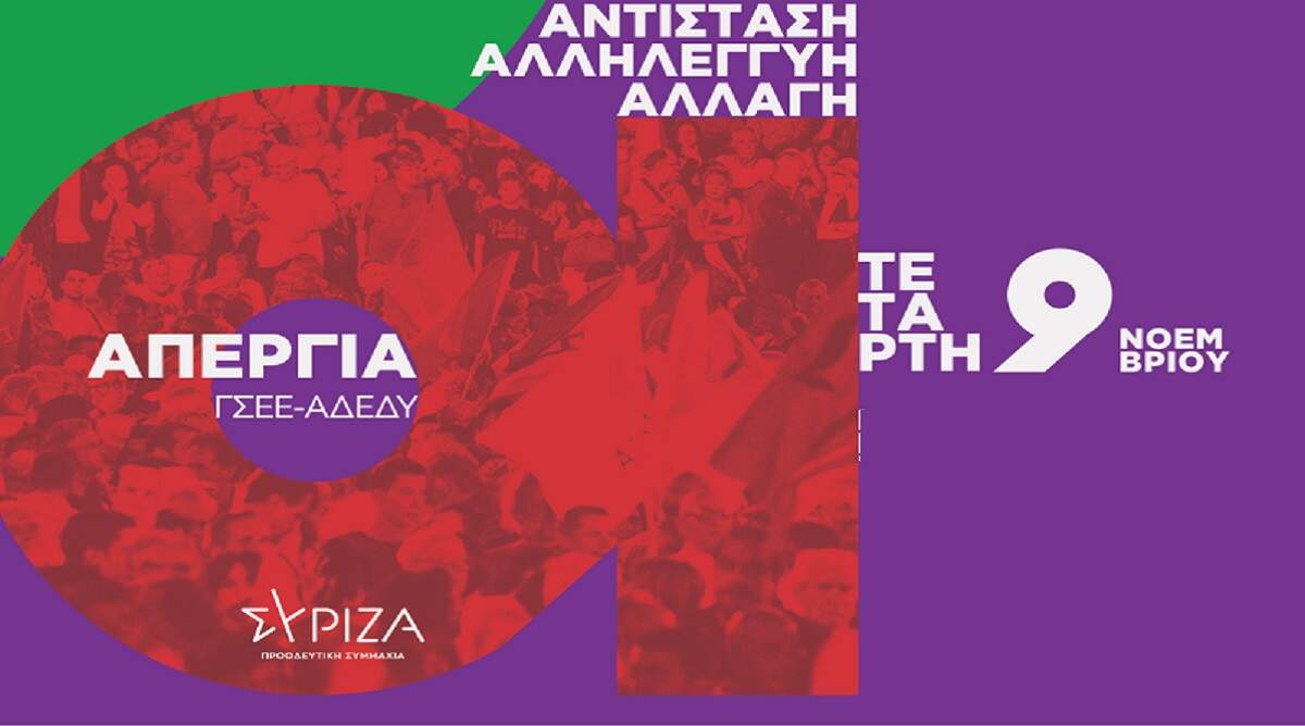 Η Νομαρχιακή Επιτροπή του ΣΥΡΙΖΑ ΠΣ, χαιρετίζει και στηρίζει, την πανελλαδική-πανεργατική απεργία ΓΣΕΕ-ΑΔΕΔΥ, την ερχόμενη Τετάρτη 9 Νοεμβρίου.