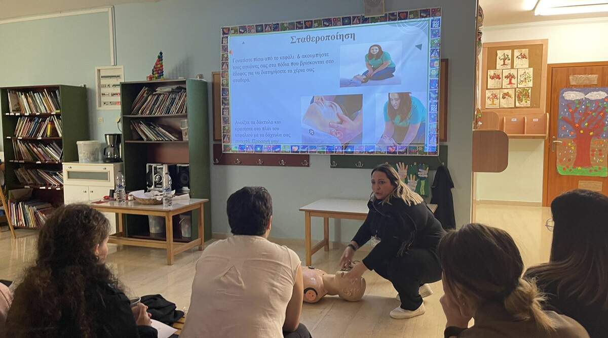 Γονείς και εκπαιδευτικοί του 1ου Νηπιαγωγείου Ιεράπετρας και του Νηπιαγωγείου Κεντρίου συμμετείχαν και παρακολούθησαν με ιδιαίτερο ενδιαφέρον, τη Δευτέρα 7 Νοεμβρίου 2022, επιμορφωτικό σεμινάριο με θέμα: «Διαχείριση τραύματος και παροχή πρώτων βοηθειών στον τόπο του συμβάντος» το οποίο πραγματοποιήθηκε από τη Διεύθυνση Δημόσιας Υγείας της 7ης Υ.ΠΕ Κρήτης, σε συνεργασία με το Γ.Ν.-Κ.Υ. Ιεράπετρας, στο 1ο Νηπιαγωγείο Ιεράπετρας.