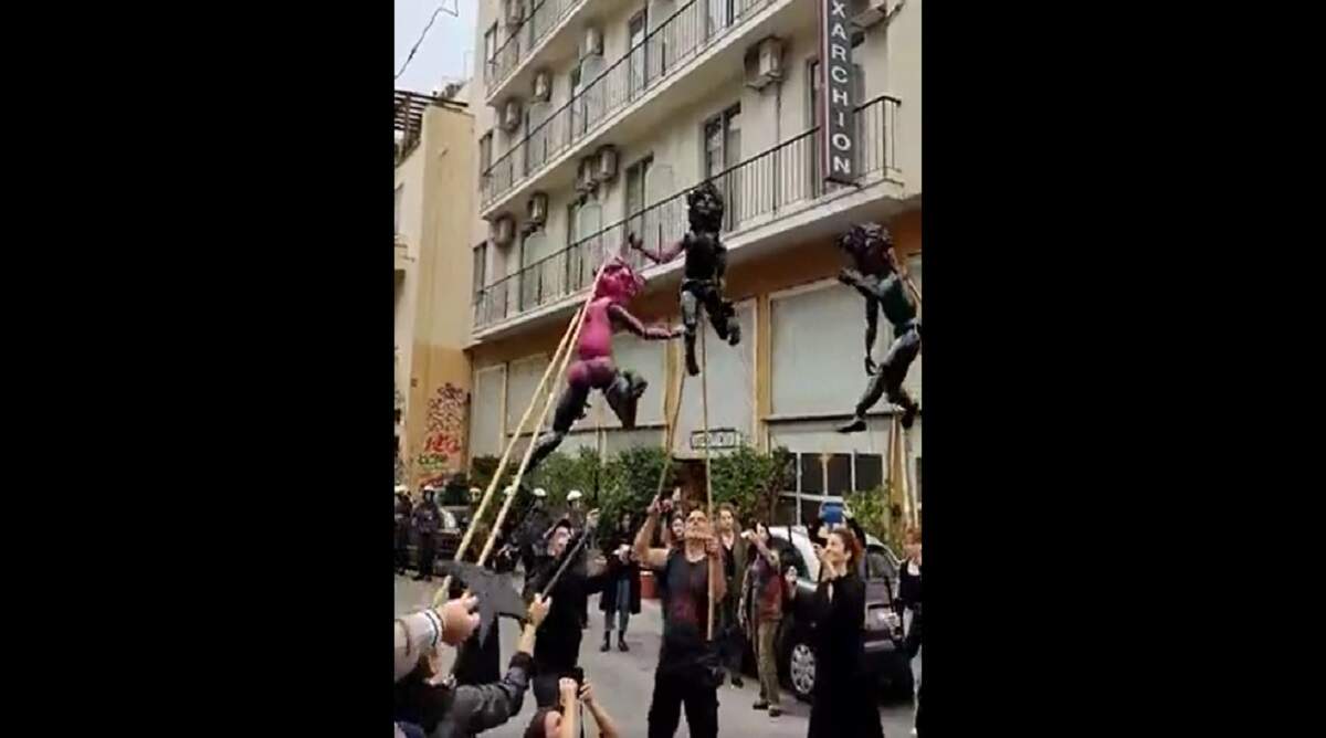 Με ένα ευφάνταστο χάπενινγκ κάτοικοι των Εξαρχείων και πολίτες που αντιδρούν στην καταστροφή της πλατείας εξαιτίας των έργων για το μετρό, στην ιδιωτικοποίηση του Λόφου Στρέφη, απάντησαν στην ακραία αστυνομοκρατία που έχει επιβληθεί στην περιοχή.