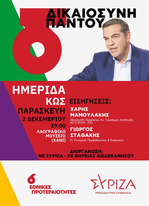 «6 Εθνικές Προτεραιότητες – Δικαιοσύνη Παντού» το θέμα της εκδήλωσης που διοργανώνεται από την Ν.Ε. ΣΥΡΙΖΑ – Π.Σ. Βόρειας Δωδεκανήσου