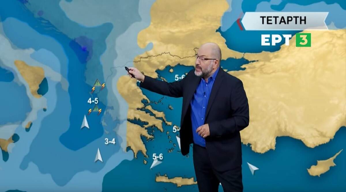 Οι άνεμοι θα πνέουν από νότιες διευθύνσεις 5 με 7 και στα πελάγη τοπικά 8 μποφόρ. Βαθμιαία στα δυτικά θα στραφούν σε δυτικούς νοτιοδυτικούς 6 με 7 μποφόρ.