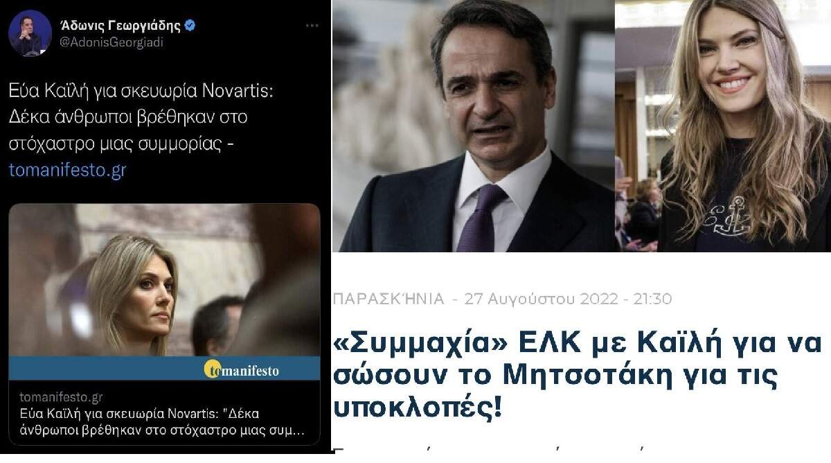Πάντως η Εύα Καϊλή, που ξεκίνησε ως αποτυχούσα υποψήφια βουλευτής εκλεκτή των Σημίτη και Βενιζέλου, πέρασε στη συνέχεια στην παρουσίαση ειδήσεων στο Mega ώστε να γίνει πιο αναγνωρίσιμη, και μετά από τα έδρανα του ελληνικού και από το 2010 του ευρωπαϊκού κοινοβουλίου, πέραν από τη στήριξη του απομένοντος “σημιτικού – βενιζελικού μπλοκ” είχε την απόλυτη εμπιστοσύνη του Κυριάκου Μητσοτάκη και των συν αυτώ. Η ίδια δεν έκρυβε τον θαυμασμό της πρωθυπουργό, που διέρρεε ότι ήταν περίπου έτοιμη για να στηρίξει την κυβέρνηση του και με τη φυσική της παρουσία. Γιατί με τις παρεμβάσεις της έμοιαζε “πουλέν του Μητσοτάκη”, ενώ μόλις σήμερα ο Ν. Ανδρουλάκης τη χαρακτήρισε “Δούρειο Ίππο της ΝΔ”.