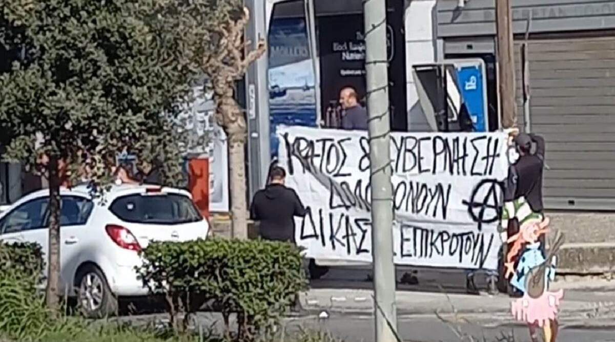 Διαμαρτυρία με πανό έκαναν ομάδες αναρχικών έξω από το το νέο Διοικητικό Πρωτοδικείο Ηρακλείου το Σάββατο, ενώ γίνονταν τα εγκαίνια από τον υπουργό Κ. Τσιάρα.