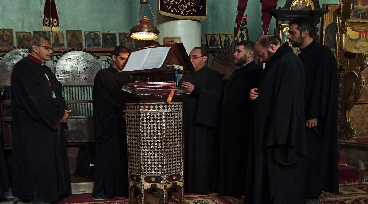 Οι ψάλτες, μαζί με μια μικρή ομάδα προσκυνητών από την Ελλάδα, αφίχθηκε στη Μονή τα ξημερώματα της παραμονής της εορτής, μετά από ένα πολύωρο αεροπορικό και οδικό ταξίδι. Μετά την ορθρινή ακολουθία, τους προσκυνητές υποδέχθηκε ο Οικονόμος π. Δανιήλ ως υπεύθυνος της φιλοξενίας η οποία αποδείχθηκε αβραμιαία. Ακολούθησε κέρασμα στο Σαλόνι όπου έγινε η γνωριμία με τον Δικαίο π. Πορφύριο, ο οποίος εκπροσωπούσε τον Αρχιεπίσκοπο Σινά, Φαράν και Ραϊθώ κ. Δαμιανό που λόγω ασθενείας βρισκόταν στην Ελλάδα, και τους υπόλοιπους πατέρες της αδελφότητας.