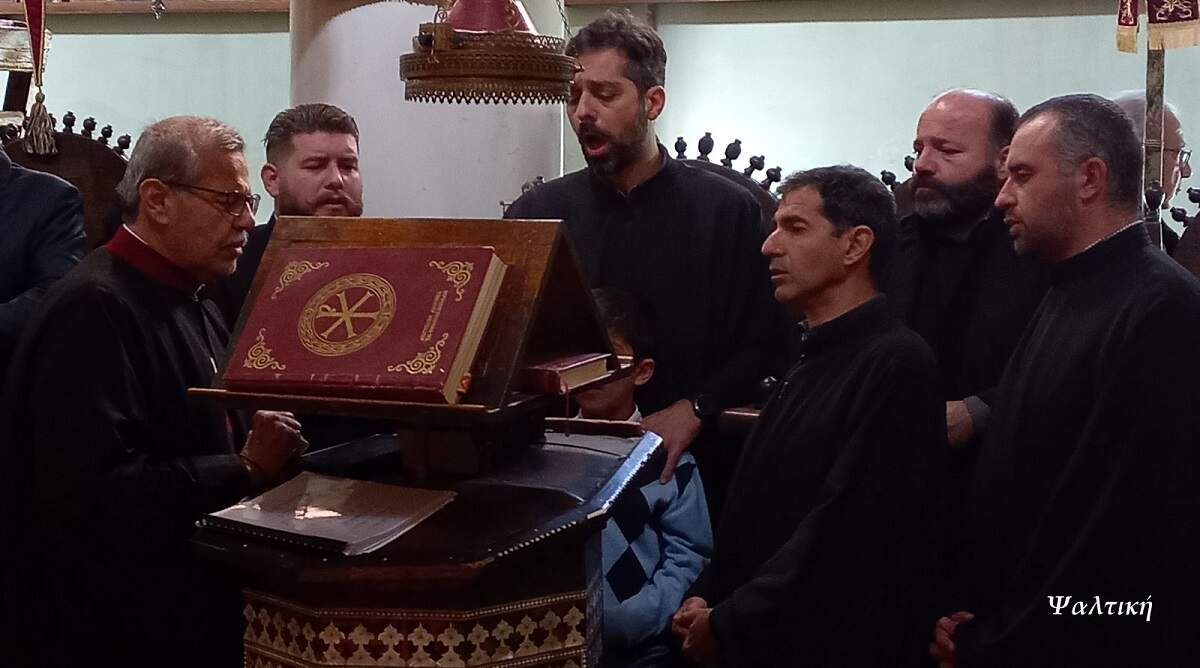 Για το σκοπό αυτό, προσκλήθηκε από τη Σύναξη των Πατέρων της Μονής να ψάλλει κλιμάκιο του χορού ψαλτών «Οι Κρήτες Μαΐστορες», υπό τον Χοράρχη κ. Αντώνιο Πλαΐτη, Άρχοντα Υμνωδό της Μεγάλης του Χριστού Εκκλησίας και Πρωτοψάλτη του Ιερού Ναού Κοιμήσεως Θεοτόκου (Παναγίτσα) Μασταμπά, Ηρακλείου Κρήτης.